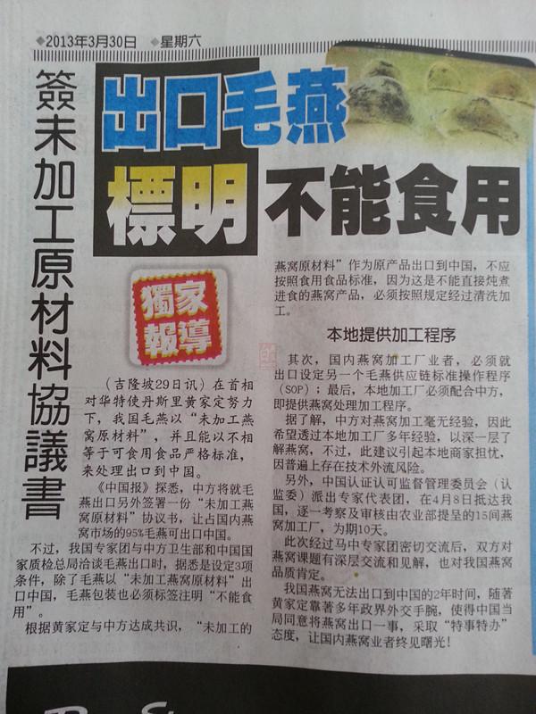 下一篇:中国官员2013年4月8日来马检验燕窝加工厂 上一篇:中国下月来马检验