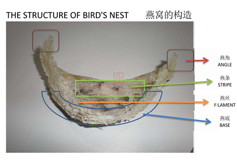 ~ 燕窝由4种主要类型的纤维组成,即是燕角,燕底,燕丝和燕条.
