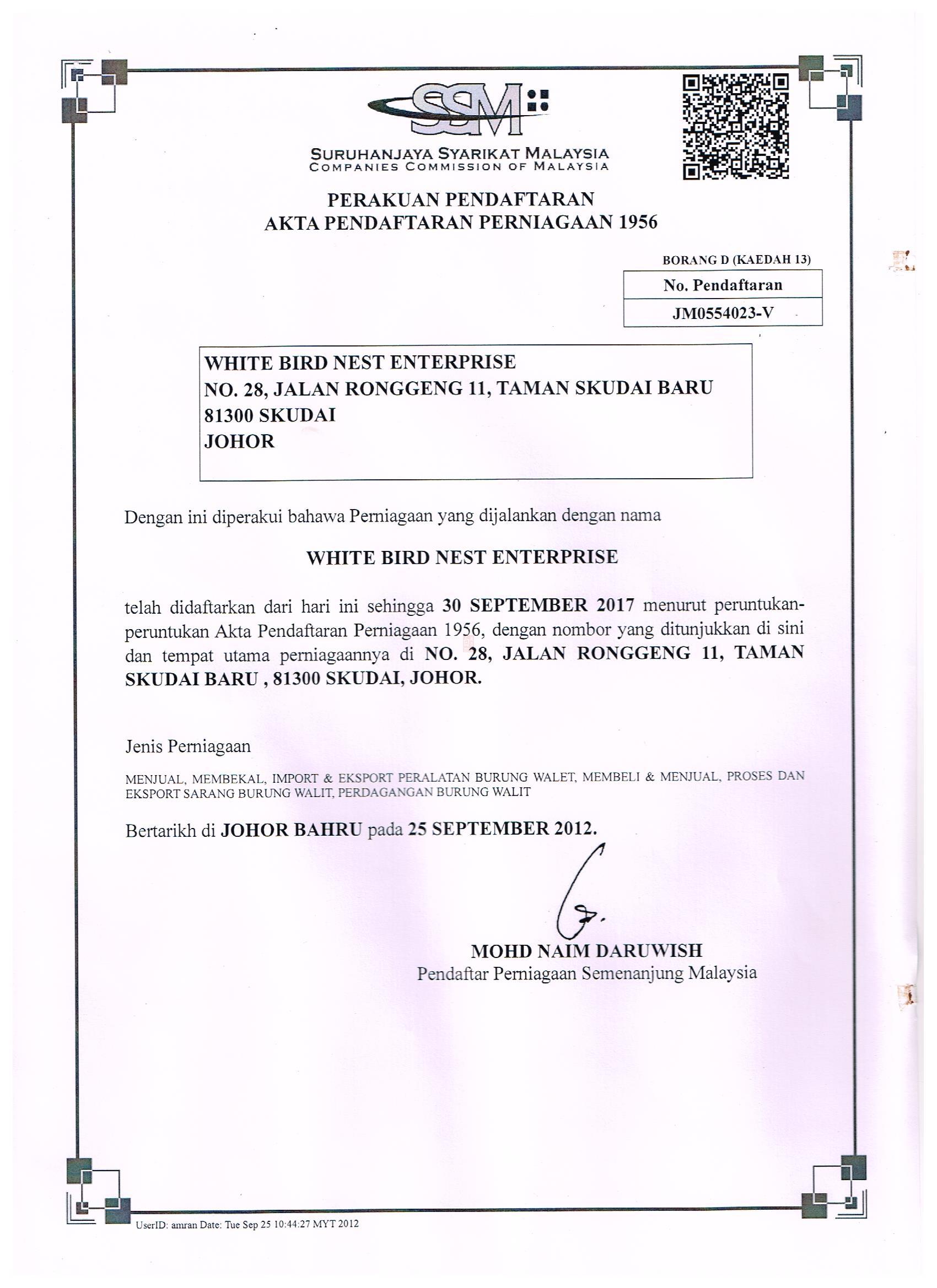 White Bird Nest Enterprise established on year 2009. We are the Malaysian based company that has 1 Stop Supply Chain of Bird Nest that focus in farming, harvesting, cleaning, wholesale, retail, Bird House design and construction.
